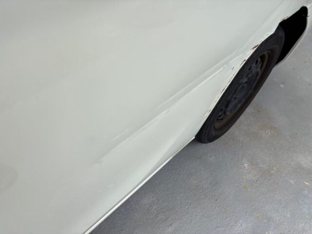 今回の修理箇所は左リアドア、リアフェンダー、リアバンパーです。